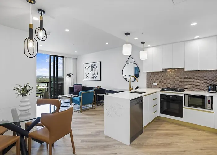 El Southport Lux Top Floor Apartment Gold Coast se encuentra en el distrito Southport, a una distancia de 3 km del Centro de Arte The Arts Centre Gold Coast, y cuenta con una piscina con una cerca de piscina. El Museo de Cera está a unos 10 minutos en coche del apartamento de 75 m², mientras que la estación de autobuses Southport Medical Precinct está muy cerca de la propiedad.